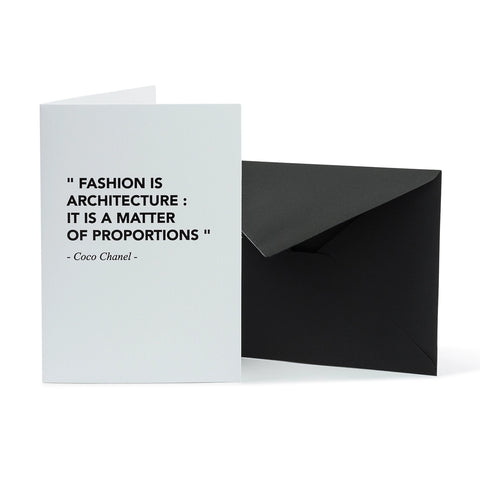 Greeting card featuring the Coco Chanel quote "Fashion is architecture; it is a matter of proportions."