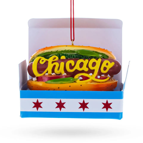 Pick up your very own Chicago-style hot dog, made from resin, designed to bring festive charm to your holiday décor.