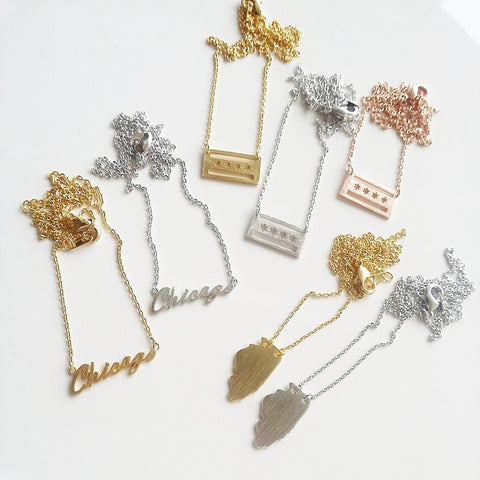 This Chicago script necklace features elegant cursive lettering that adds a personal and stylish touch to any outfit. Its minimalist design makes it a versatile accessory, perfect for everyday wear or special occasions. Crafted to highlight the beauty of the iconic Chicago script, it offers a subtle yet meaningful statement piece.